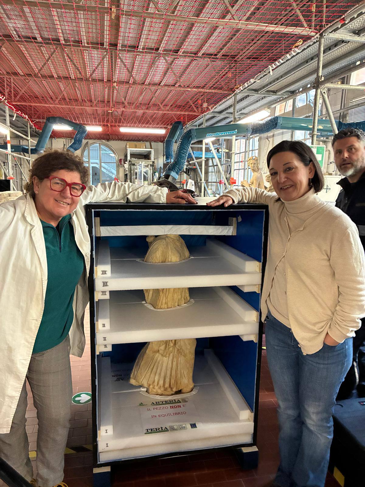 « È sempre emozionante per noi dell'OPD salutare un'opera che torna a casa! Oggi la Statua di Artemide da Castiglione della Pescaia ha lasciato il Laboratorio del settore materiali lapidei dopo un lungo e paziente restauro condotto dalla restauratrice Franca Sorella, affiancata dalla archeologa Maria Emilia Masci e dalle indagini condotte da Monica Galeotti, Andrea Cagnini, Simone Porcinai e Virgilio Vecchio del laboratorio scientifico dell'OPD, con la consulenza del Prof. Lorenzo Lazzarini per le indagini petrografiche, la collaborazione del dipartimento di Geologia dell'Universita di Firenze per le indagini soniche, di Ottaviano Caruso per la diagnostica per immagini, di Cristian Ceccanti per la documentazione fotografica e di tanti altri che hanno affiancato il restauro con indagini, ricerche e sperimentazioni.